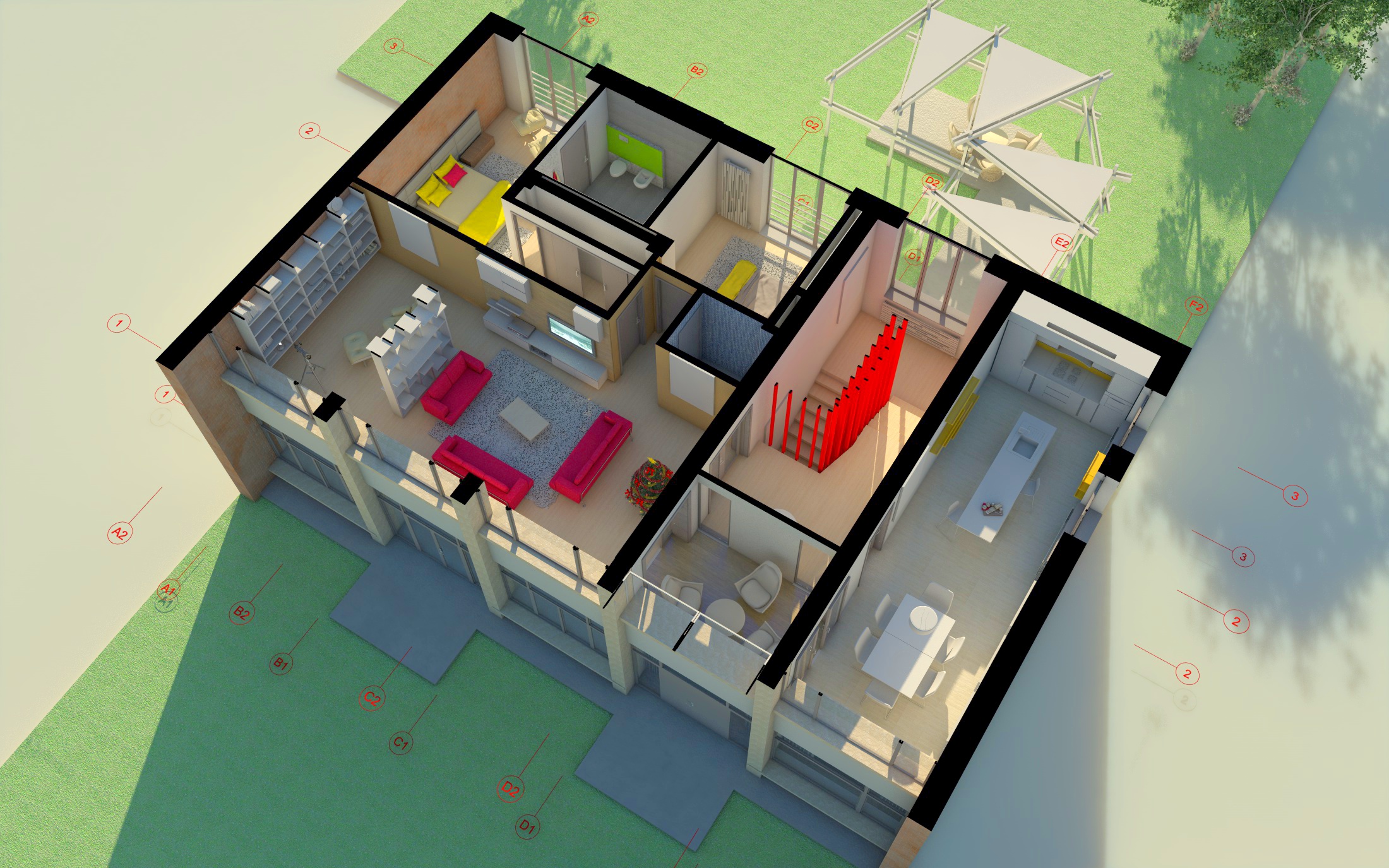 c4d render 9.12 – etaj taiat – render 1